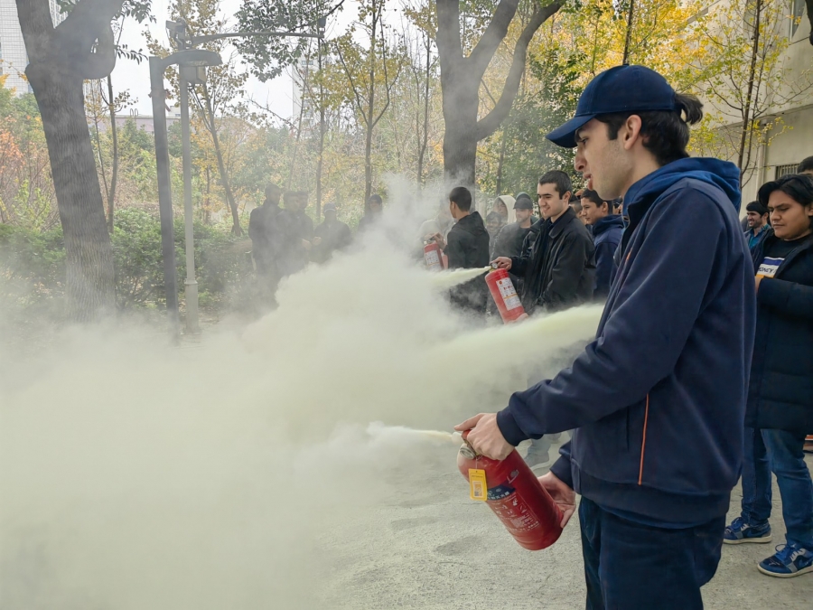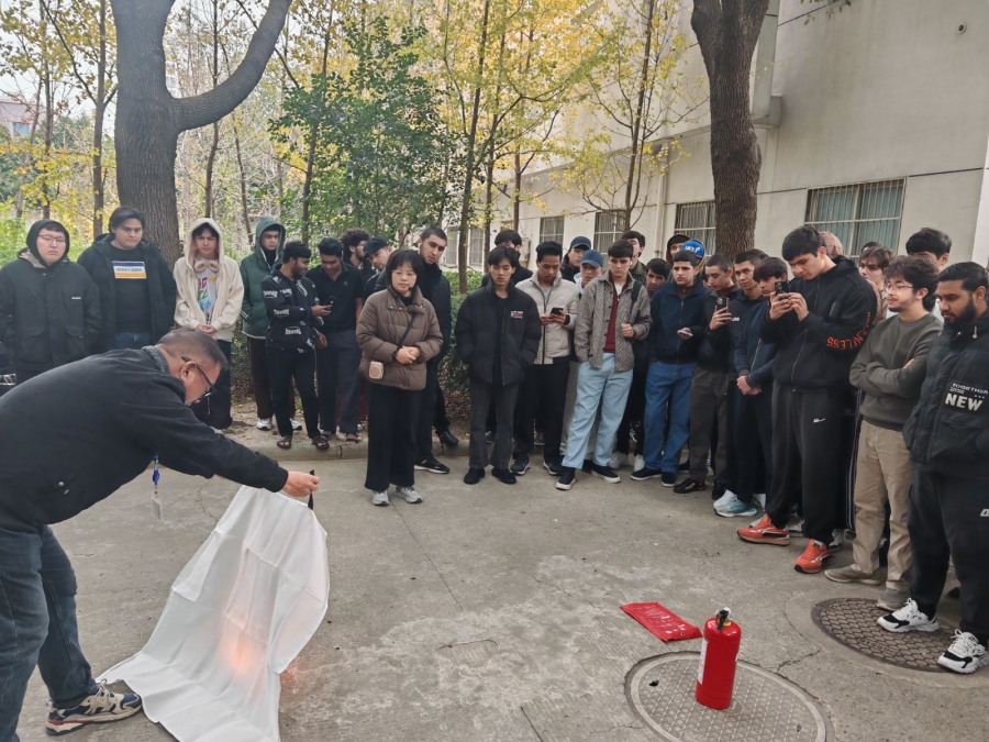12月4日下午,国际合作交流处协同保卫处在留学生公寓围绕学校第十六届消防安全月活动主题“全民消防 生命至上”召集在校外教及留学生召开了2024年度消防应急疏散演练及灭火设备使用演练活动。活动邀请了专业消防人员----学校保卫处郑勇老师现场指导,针对留学生可能遇到的火灾情况,详细讲解了疏散逃生和灭火器的正确使用方法。在演练中,在校外教和留学生们积极参与,学习如何快速判断火情,选择合适的逃生路径,以及如何在紧急情况下使用灭火设备。通过这次活动,不仅提高了留学生的消防安全意识,也增强了他们在遇到突发事件时的自救互救能力。
