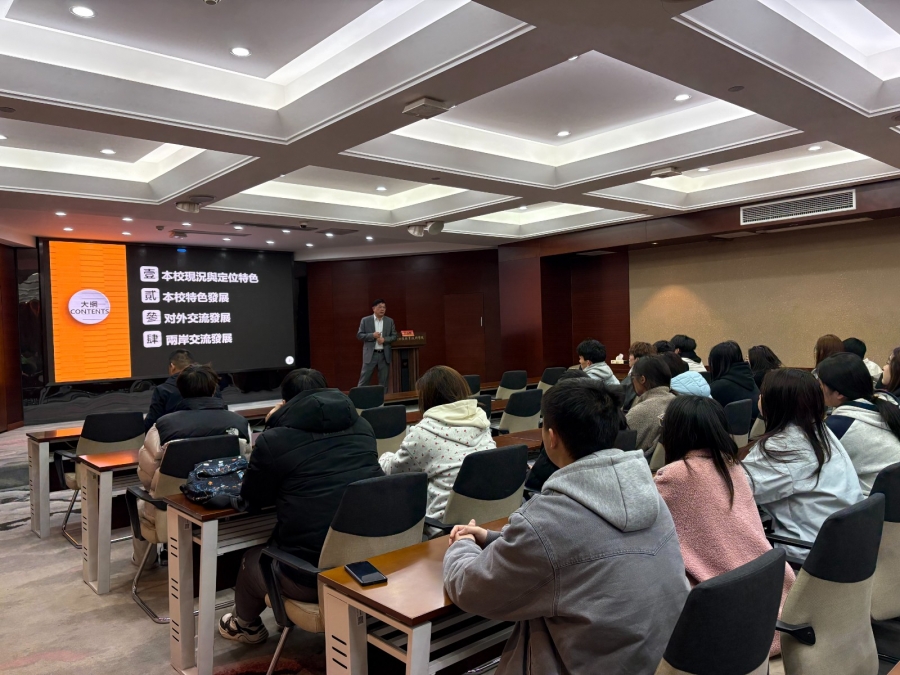 洽谈会结束后,尹主任还以台湾龙华科技大学为例,向有意日后赴台交流研学的学生们开展了主题为《台湾高等教育现况》的讲座,让学生们对台湾的教育环境、文化氛围以及学习生活方式有了更深入的了解。讲座生动有趣,不仅介绍了台湾高等教育的概况,还分享了自己在教育领域的经验和见解,激发了学生们对赴台交流的热情和兴趣。