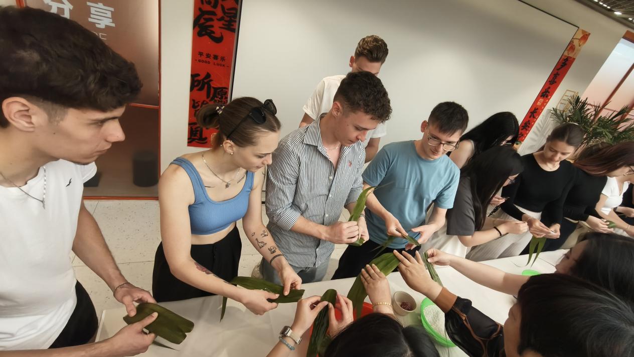 匈牙利师生们在中方伙伴的指导下学习包粽子,从粽叶折叠到馅料调配,亲身感受中国饮食文化的精髓。